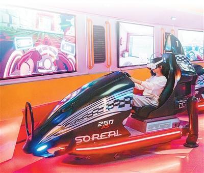 观众戴上VR(虚拟现实)眼镜,沉浸体验开赛车。李文明摄(影像中国)
